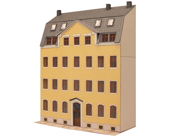 Gebäude-Bausatz für Modelleisenbahn - Stadthaus der Gründerzeit in der Annaberger Schillerstraße 1 - erbaut ca. 1910.