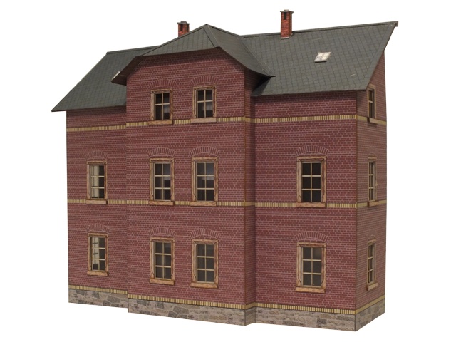 Gebäude-Bausatz Vorstadthaus mit Klinker und Schieferdach. Diese Bauart findet man in ganz Sachsen verbreitet in den unterschiedlichsten Variationen. Halbrelief eine Stadt auf wenig Platz.