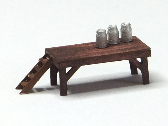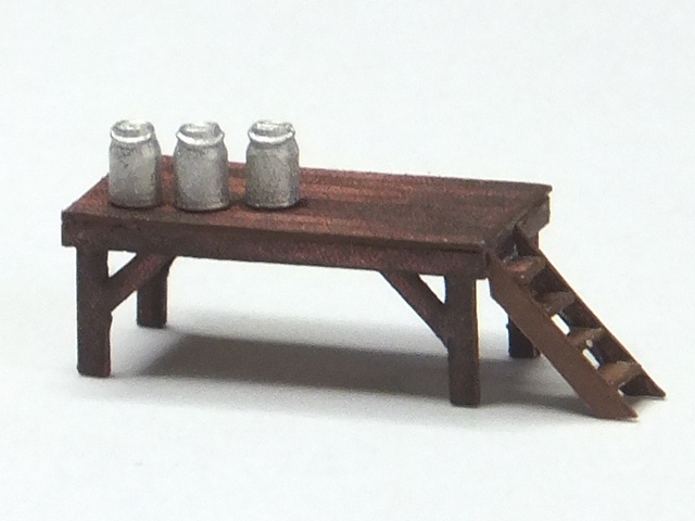 Eine kleine Milchrampe, wie sie oft in ländlichen Gegenden zu finden war. Dieses Modell ist eine gute Ergänzung zu einem Bauernhof.