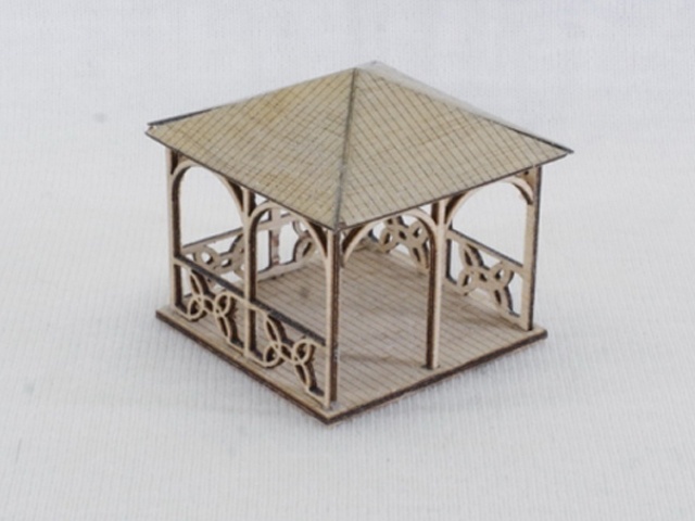 Drei Seiten mit kunstvollem Geländer, eine Seite offen.